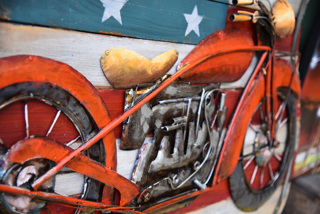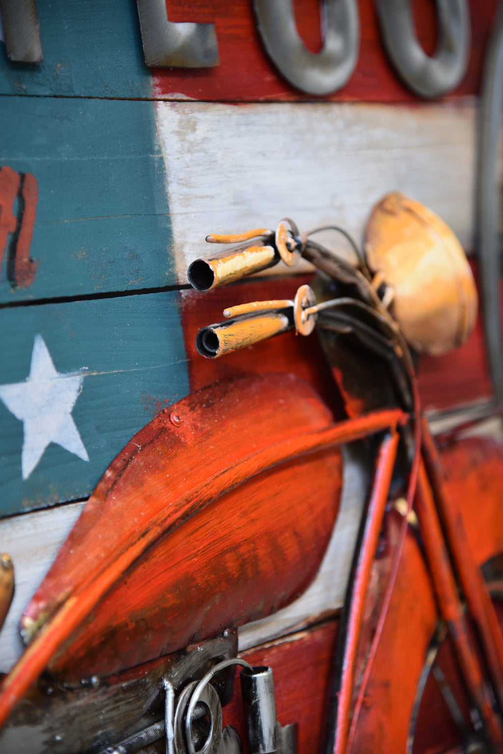 Wanddeko Biker, Metallbild, 3D-Kunstwerk, Vintage-Motiv