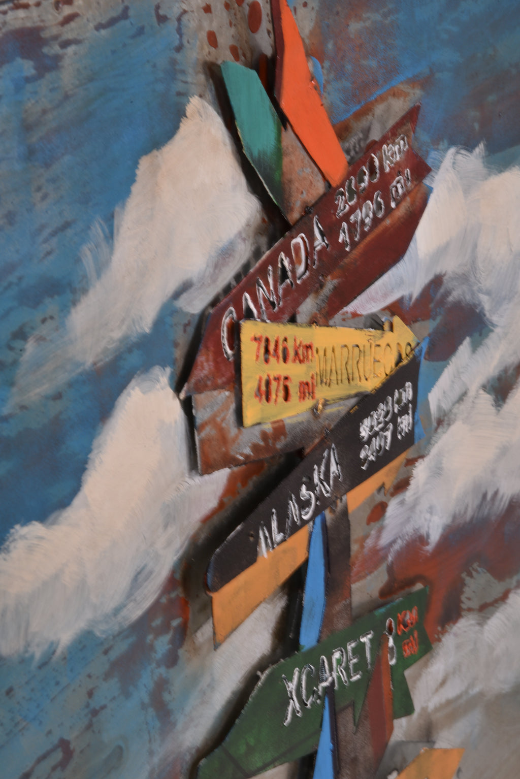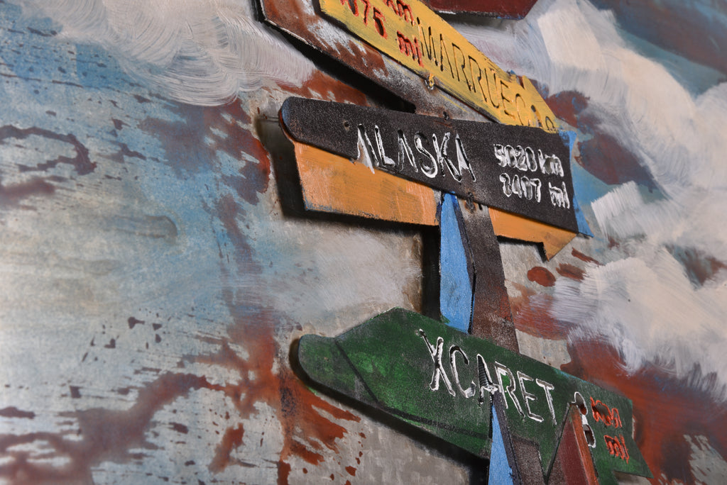 ✨ Dieses faszinierende 3D-Metallbild präsentiert einen charmanten Wegweiser, der aus buntem Metall gefertigt und mit aufwendiger handgefertigter Malerei verziert wurde. Ein einzigartiges Dekorationsstück für Ihre Wände.
