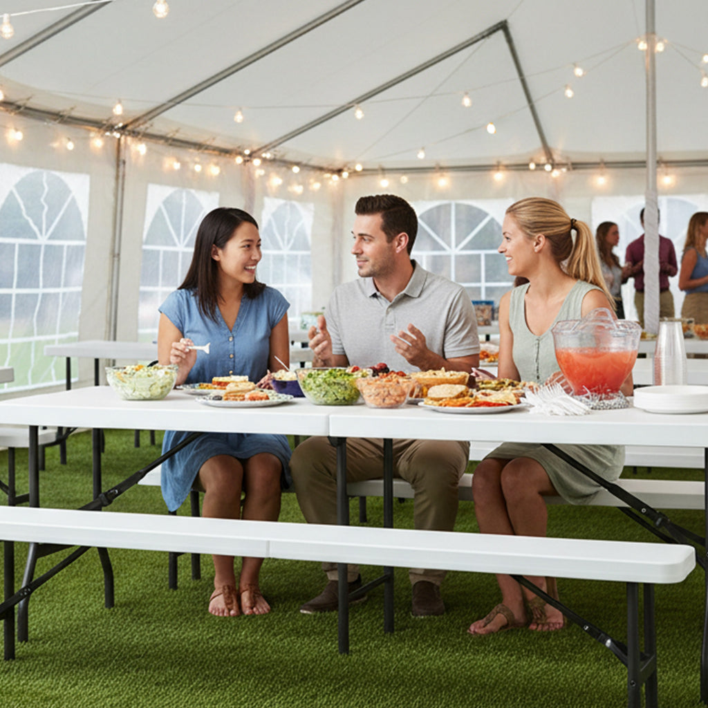 Ob als Bierzeltbank bei Vereinsfesten, als zusätzliche Sitzbank bei Gartenpartys oder als flexible Bestuhlung im Catering- und Eventbereich: Die klappbare Bierbank ist schnell aufgestellt, standsicher und dank ihrer neutralen Farbgebung mit vielen Tisch- und Garnitursystemen kombinierbar. Das kompakte Packmaß erleichtert die Lagerung im Fahrzeug, Lagerraum oder Geräteschuppen und reduziert den Platzbedarf im Vergleich zu feststehenden Bänken deutlich.