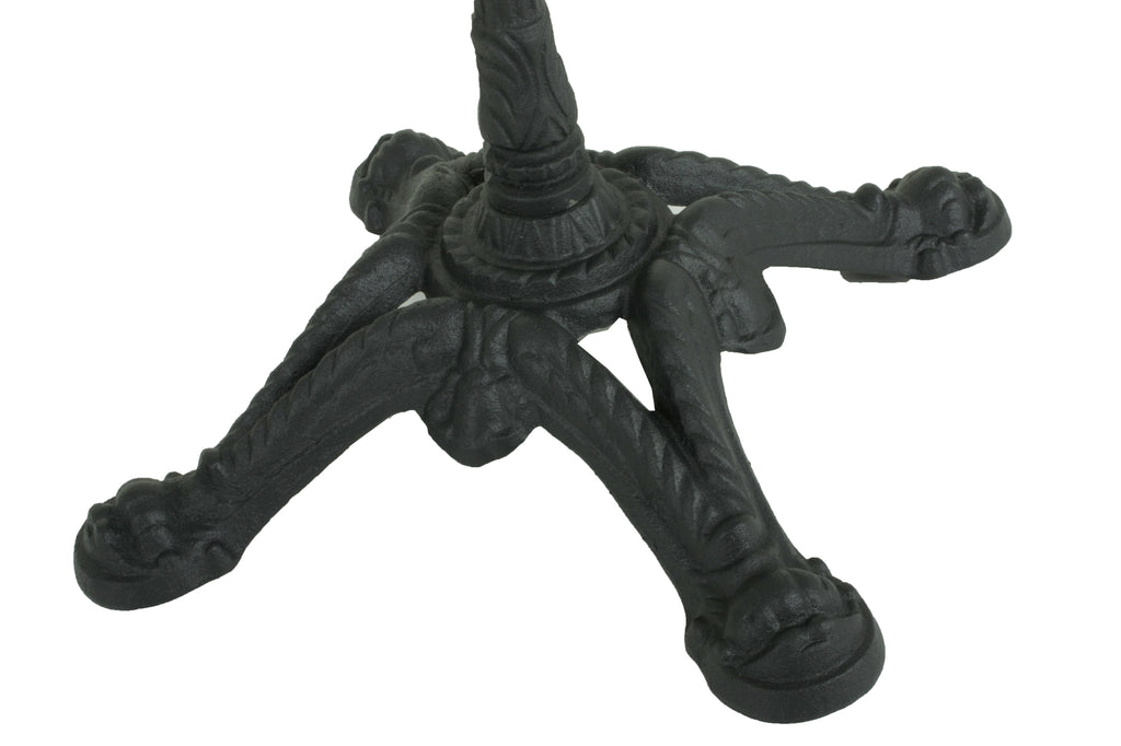 Dank des Gusseisen-Gestells ist der Tisch besonders stabil und langlebig, was ihn ideal für den Einsatz in Cafés, Restaurants oder privaten Wohnbereichen macht. Die kunstharzbeschichtete Tischplatte ist strapazierfähig und pflegeleicht.