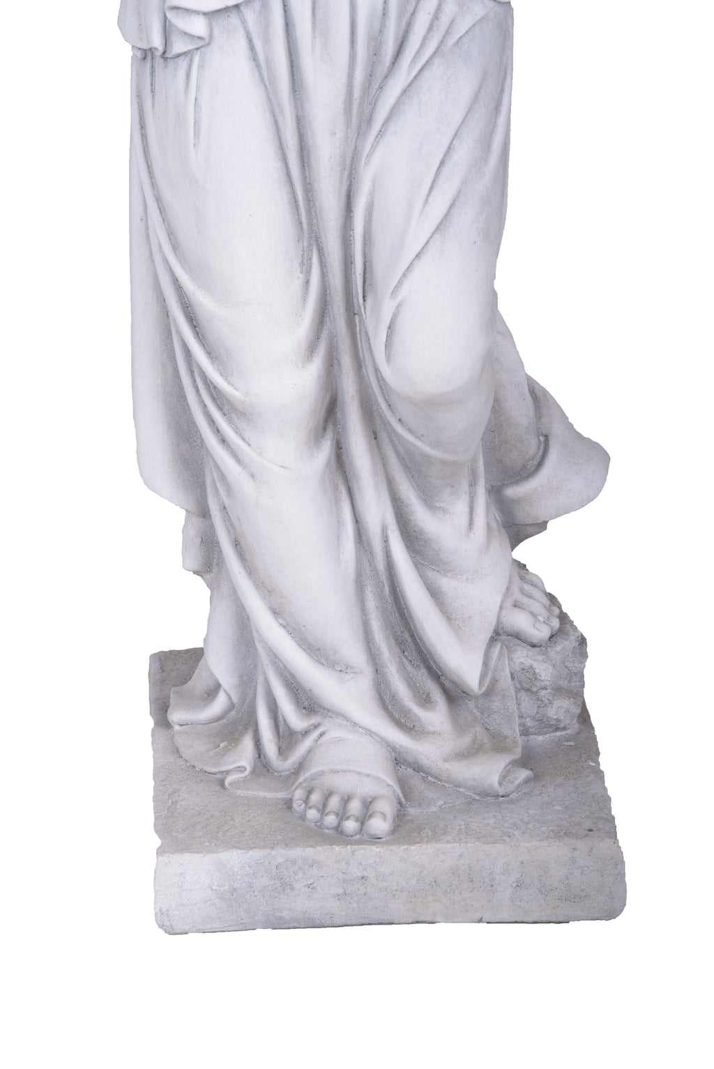 Gefertigt aus einem leichten, aber robusten Fiberglas-Magnesiumoxid-Verbund, ist die Figur wetterbeständig und langlebig. Sie ist für den ganzjährigen Außeneinsatz konzipiert und behält ihre edle Ausstrahlung über lange Zeit. Die Lieferung erfolgt im montierten Zustand für eine sofortige Platzierung.