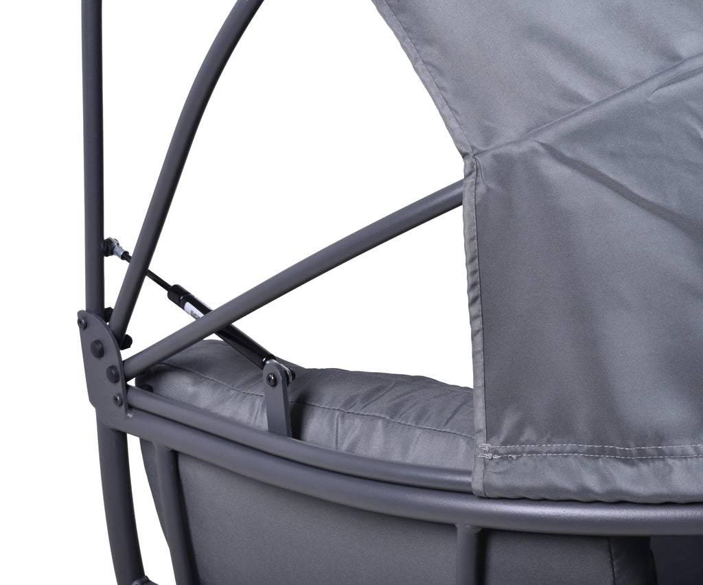 Dieser Loungesessel ist der ideale Ort, um sich mit einem Buch zurückzuziehen oder einfach nur die Gedanken schweifen zu lassen. Das verstellbare Sonnendach bietet Schutz vor der Sonne und schafft eine private, behagliche Atmosphäre.