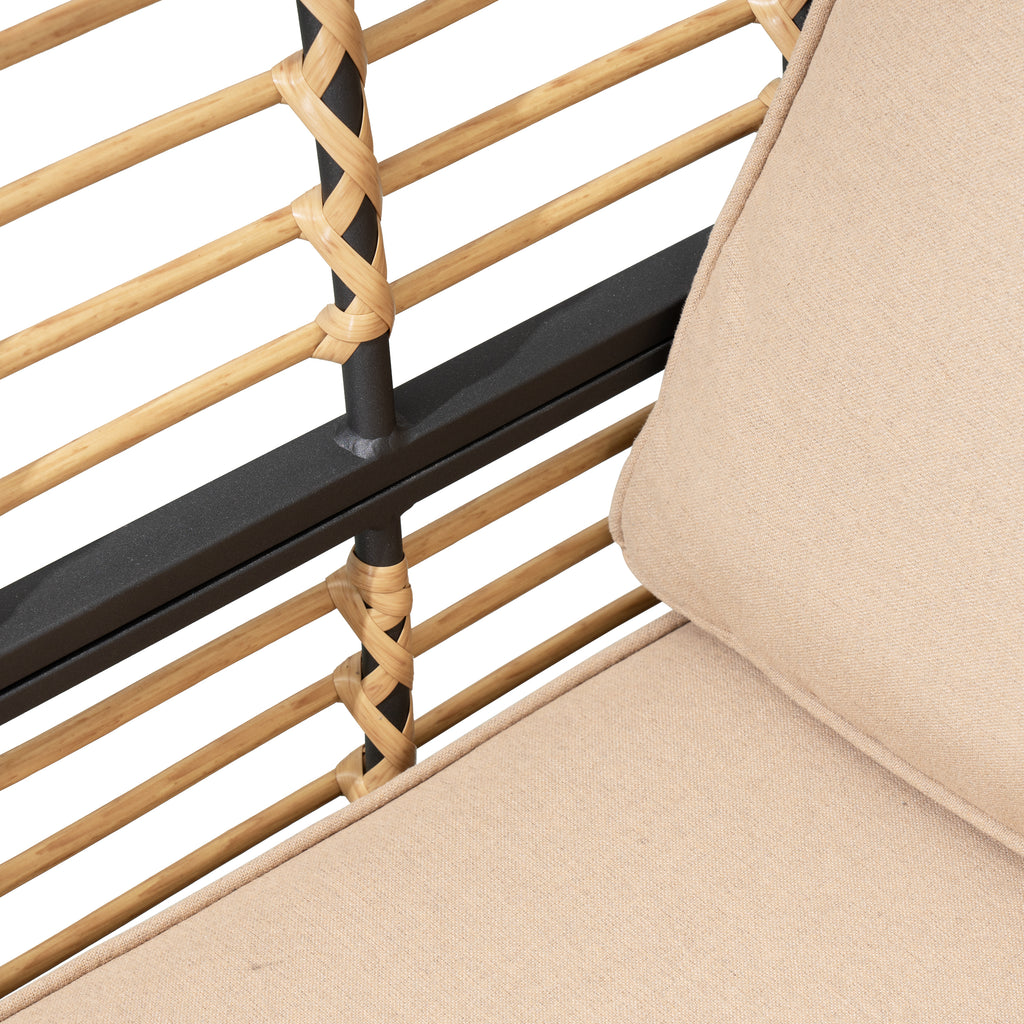 Die Basis bildet ein leichtes, aber sehr robustes Aluminiumgestell, das absolut wetterfest ist. Die verwendeten Materialien wie Polyethylen und Polyester sind speziell für den Außenbereich ausgewählt, um Langlebigkeit und einfache Pflege zu gewährleisten.