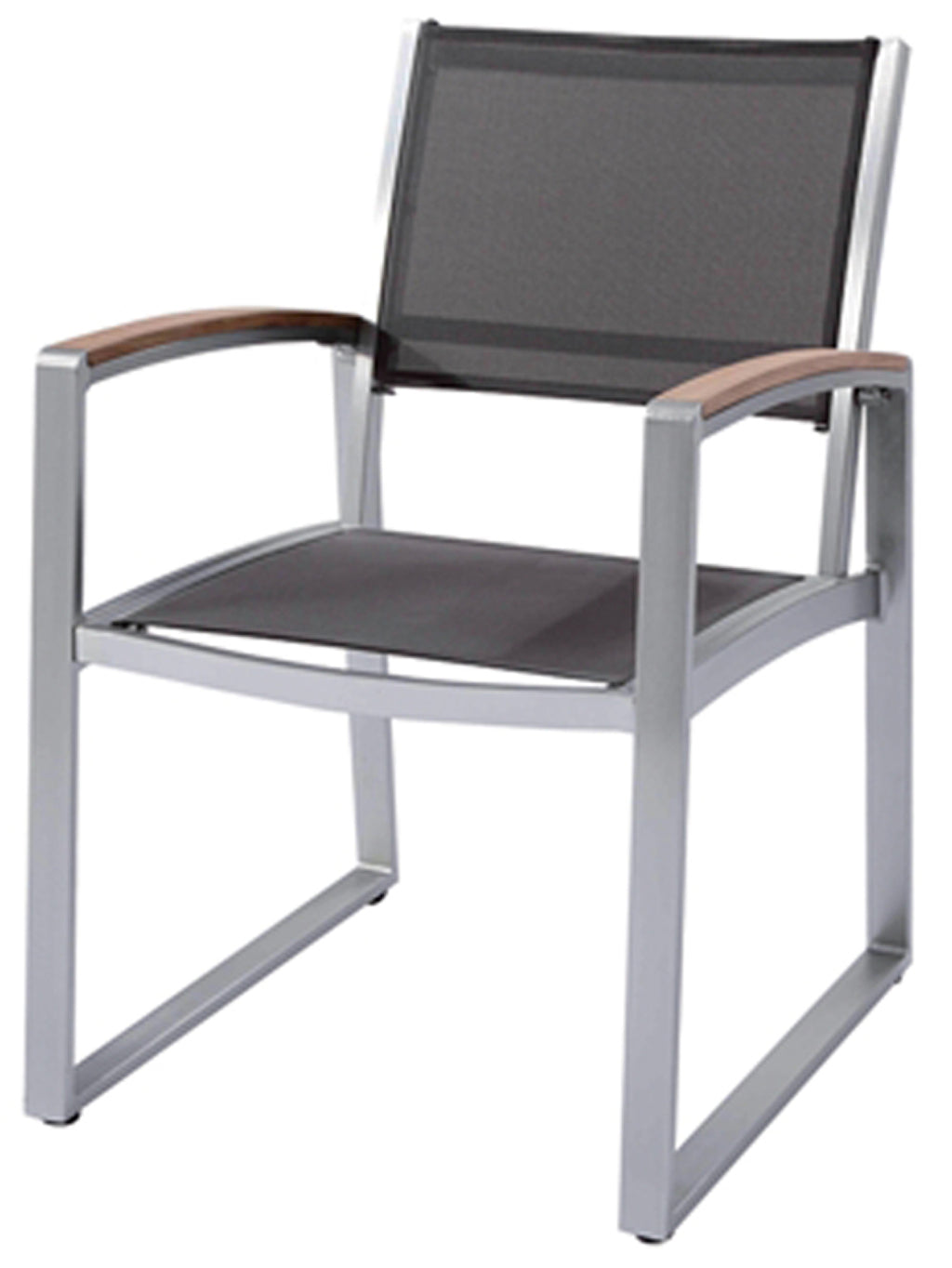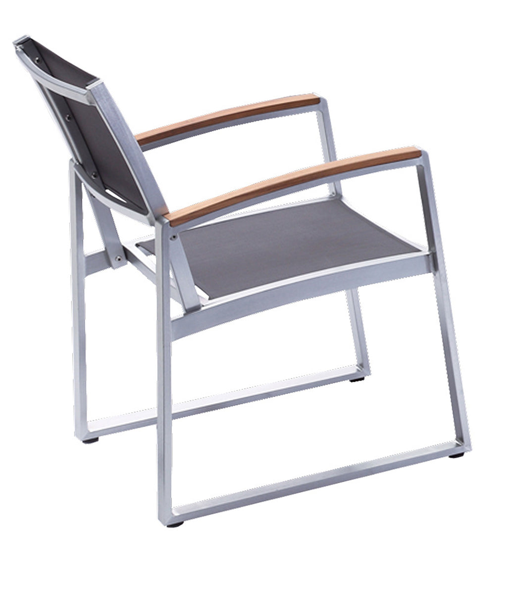 Der Rahmen des Stuhls ist aus robustem, grauem Aluminium gefertigt, was für Stabilität, Langlebigkeit und Rostbeständigkeit sorgt. Die Sitz- und Rückenfläche besteht aus strapazierfähigem Kunststoffgewebe, das bequemen Sitzkomfort bietet und leicht zu reinigen ist.