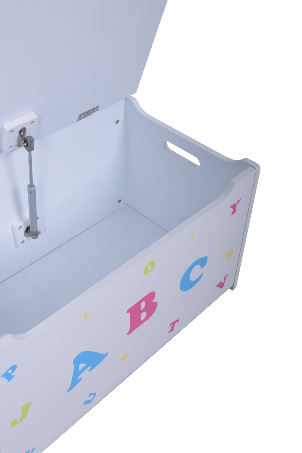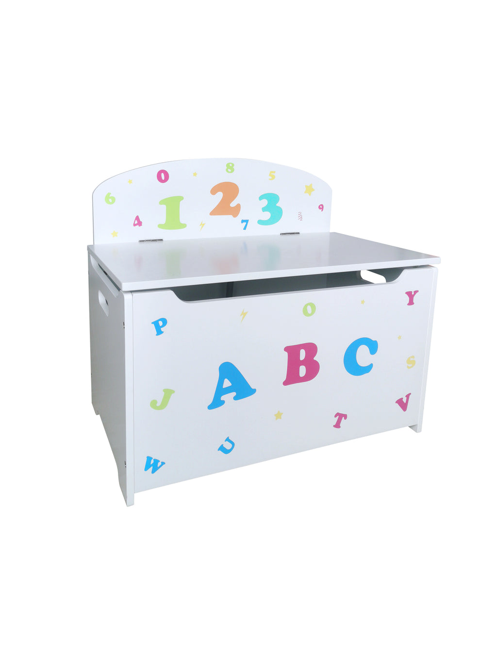 ✨ Die Kinder-Truhenbank "ABC" ist eine bezaubernde und praktische Ergänzung für das Kinderzimmer. Hergestellt aus weiß lackiertem Holz (MDF) mit einer niedlichen "ABC"-Aufschrift, ist sie Sitzgelegenheit und Aufbewahrungslösung in einem.