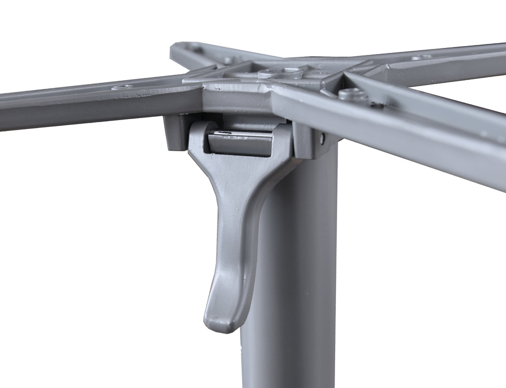 Die Dark Slate-Tischplatte verleiht dem Tisch eine moderne Optik, die an natürliches Steinmaterial erinnert. Das klappbare Tischgestell aus silbermattem Aluminium ist stabil und leicht zu handhaben, ideal für Orte mit begrenztem Raum.