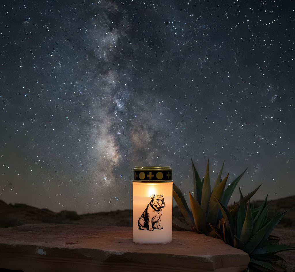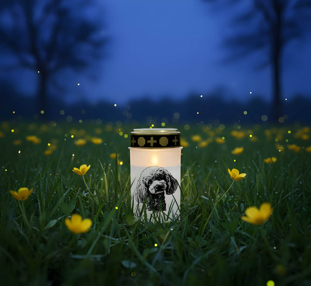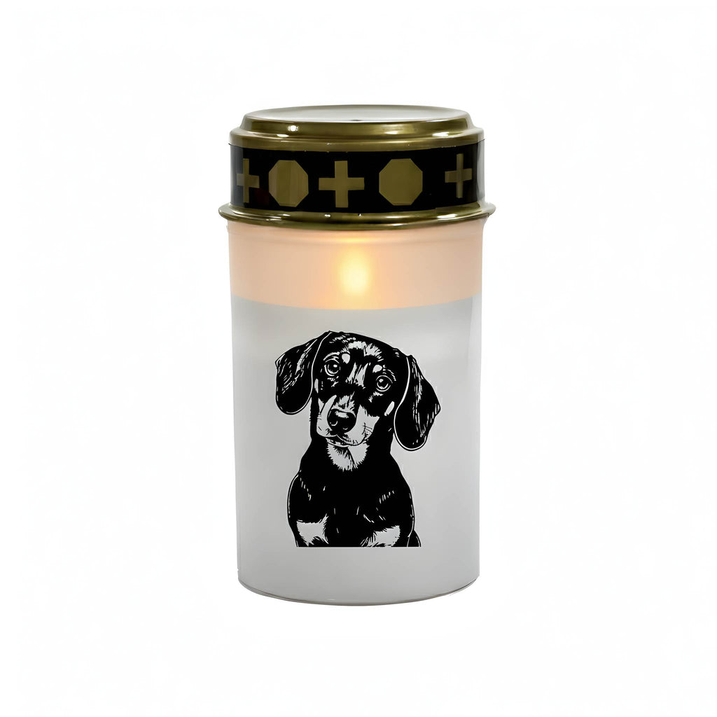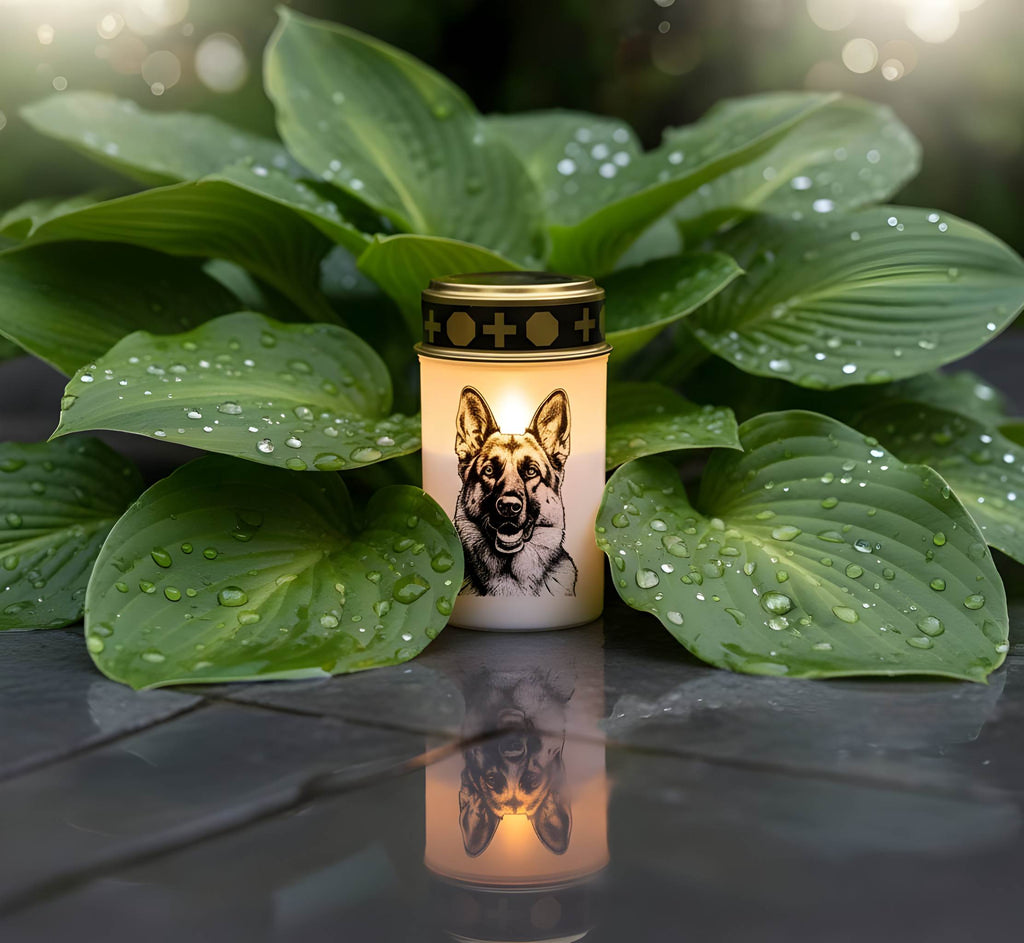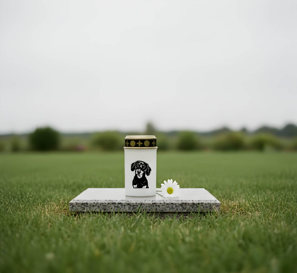 Wenn ein geliebter Hund geht, bleibt eine Lücke im Herzen zurück. Unsere LED Grablichter mit Hundemotiv sollen dabei helfen, die Erinnerung an Ihren treuen Begleiter würdevoll und liebevoll sichtbar zu machen. Das warm flackernde LED-Licht erinnert an eine echte Kerze und schafft eine sanfte, stille Atmosphäre – auf dem Friedhof, am Tiergrab oder an Ihrem persönlichen Gedenkplatz zu Hause.