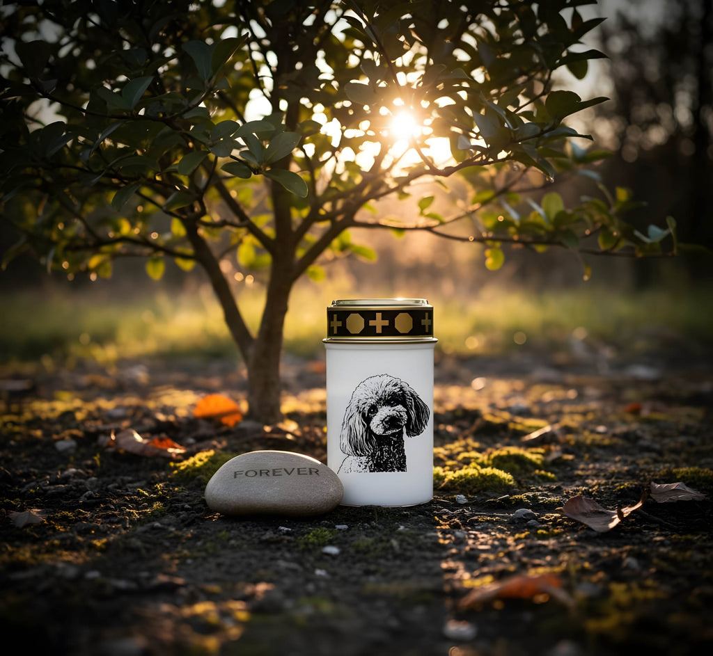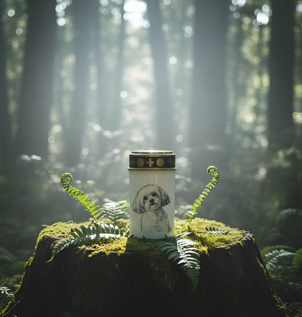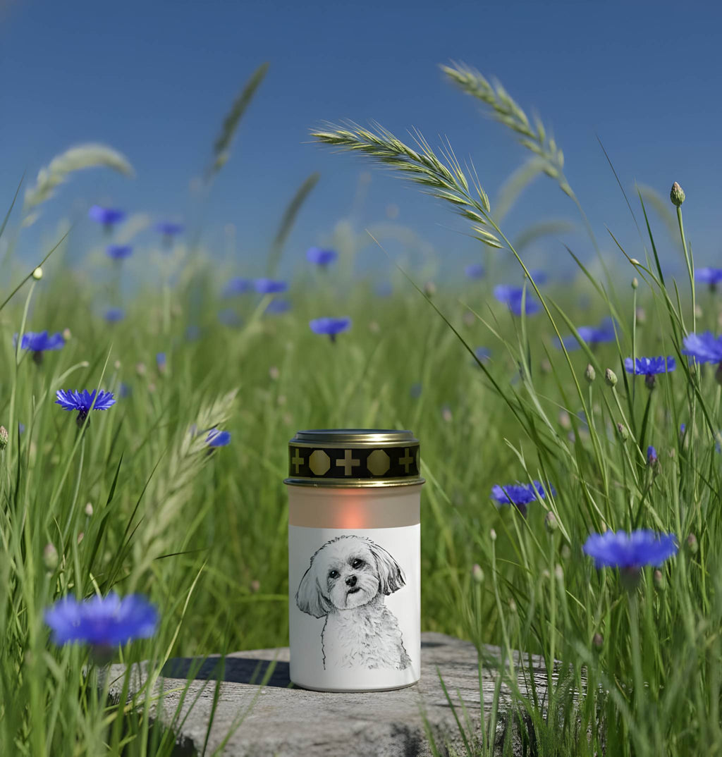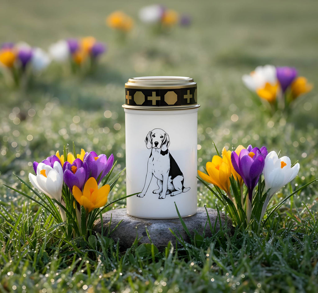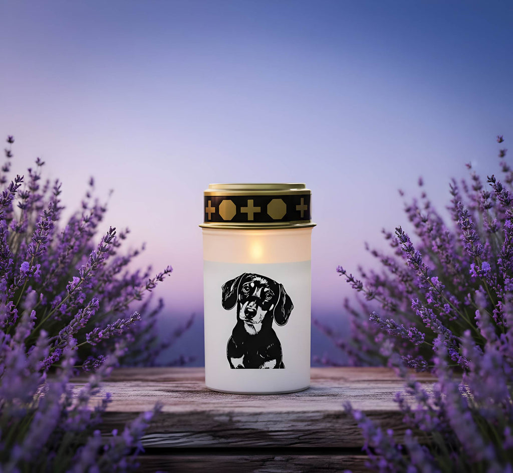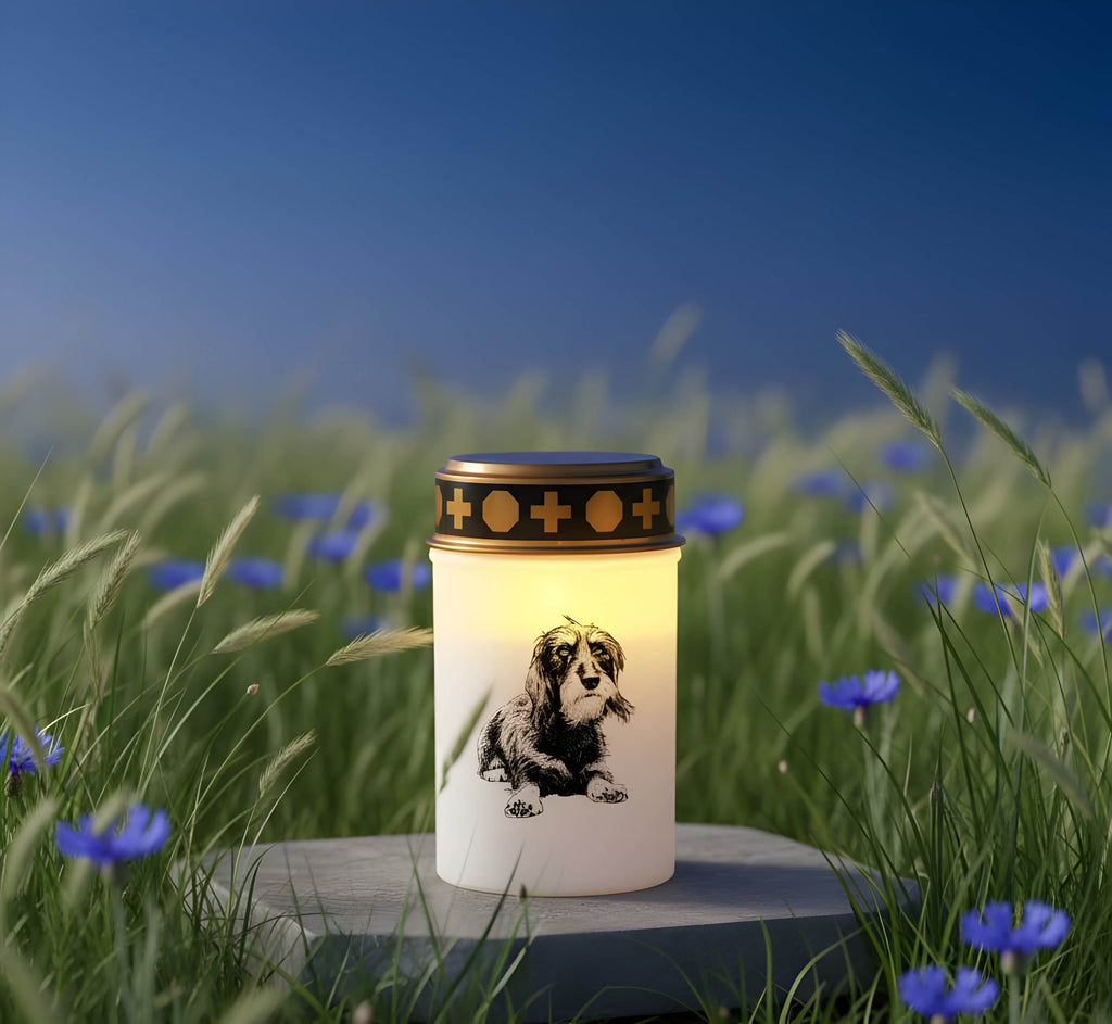 ✨ Hunde Grabschmuck – liebevolle Hundemotive ermöglichen ein sehr persönliches, würdiges Erinnerungslicht.