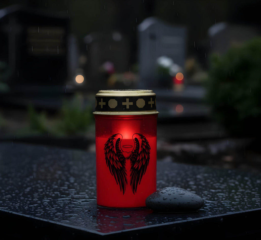 Diese LED Grablichter mit Batterien sind eine würdevolle und sichere Alternative zur klassischen Grabkerze. Mit flackerndem LED-Licht in Rot oder Weiß sorgen sie für eine stimmungsvolle Beleuchtung auf dem Friedhof, in Kirchen oder zu Hause im Gedenkbereich.