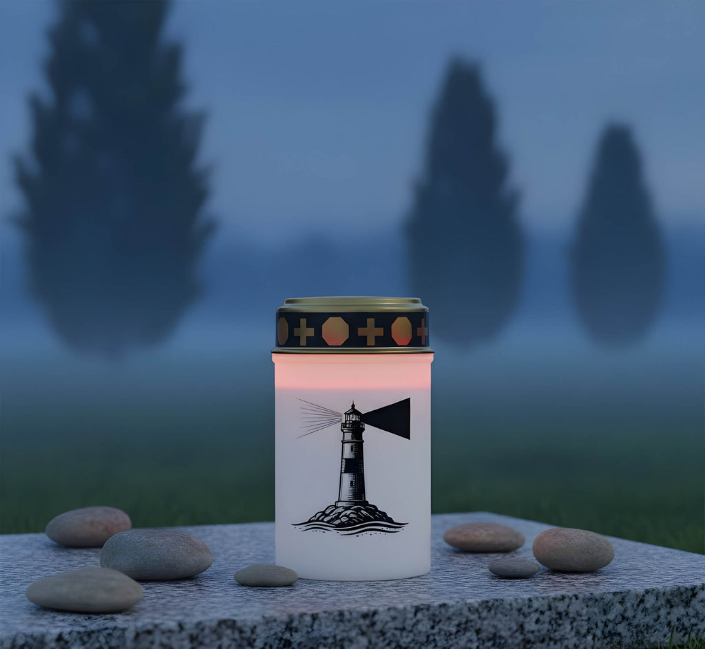 Bestellen Sie jetzt Ihr LED Grablicht in Rot oder Weiß mit Ihrem gewünschten Motiv und setzen Sie ein helles, persönliches Zeichen der Erinnerung.