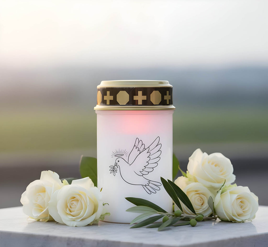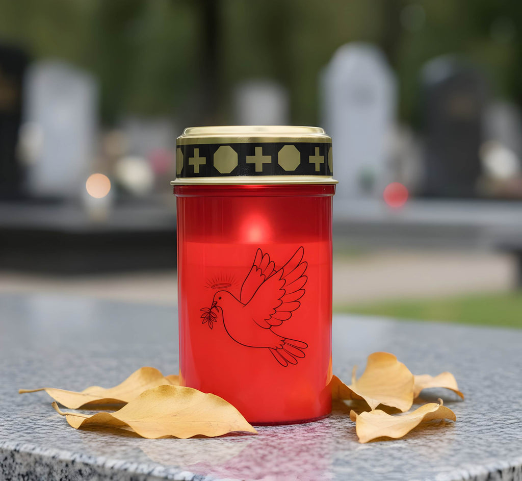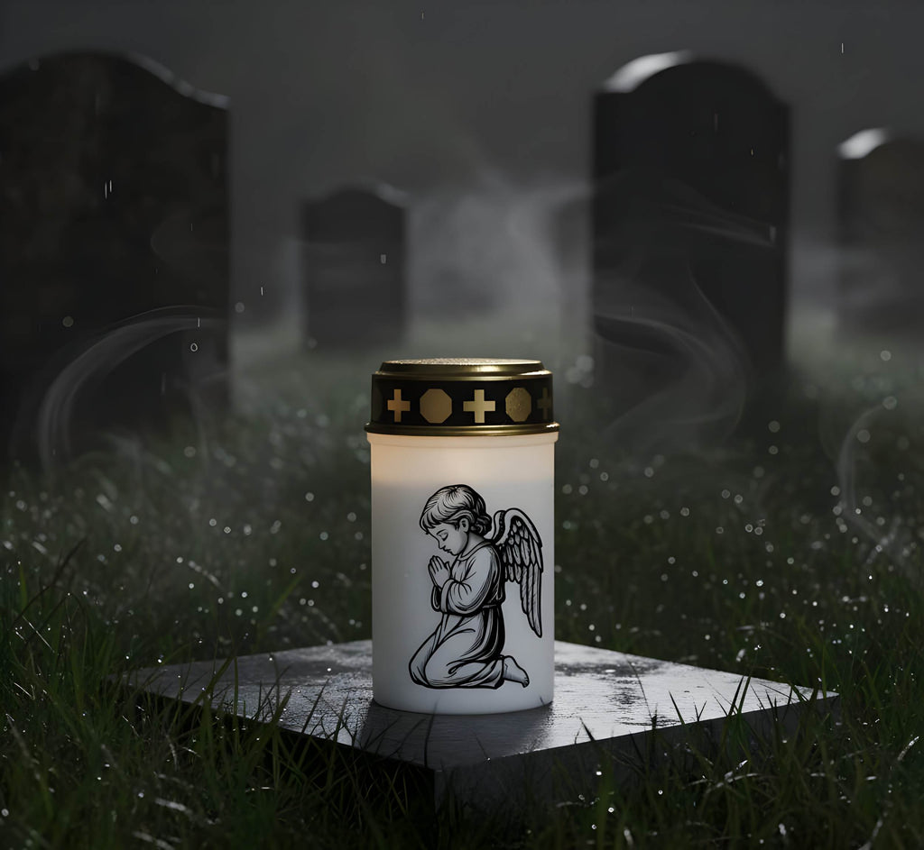 ✨ Auswahl verschiedener Motive – wählen Sie zwischen unterschiedlichen Motiven und gestalten Sie die Grabkerze individuell.
