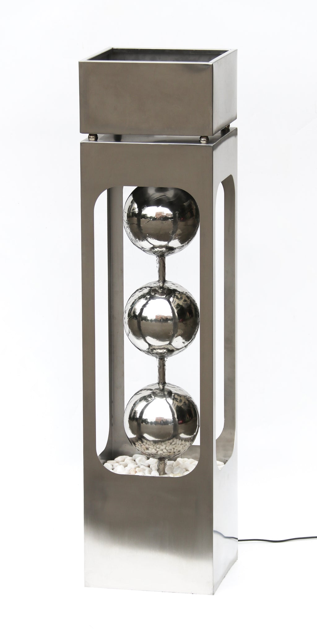 Die Konstruktion aus gebürstetem Edelstahl verspricht höchste Langlebigkeit und absolute Witterungsbeständigkeit. Das mitgelieferte Komplettset inklusive Pumpe einer 10 Meter langen Zuleitung und weißen Dekosteinen ermöglicht eine schnelle und unkomplizierte Inbetriebnahme Ihres neuen Garten-Highlights.
