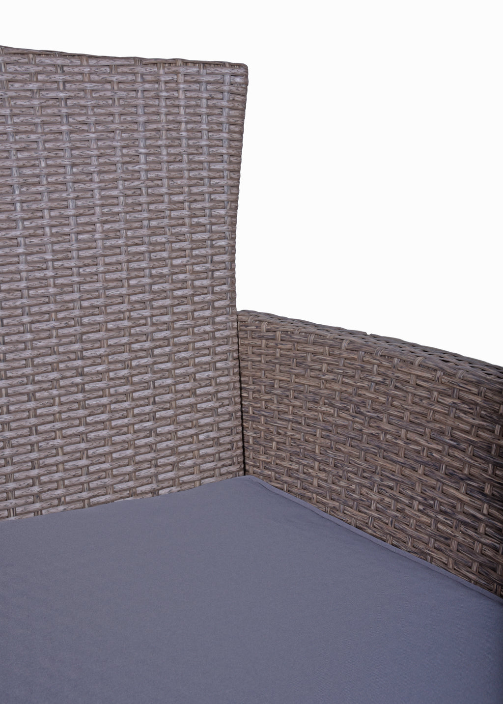 Die robuste Konstruktion aus einem Stahlrahmen und witterungsbeständigem Kunststoffgeflecht sorgt für eine langfristige Nutzung. Das Set ist pflegeleicht und ideal auf die Anforderungen im Außenbereich abgestimmt.