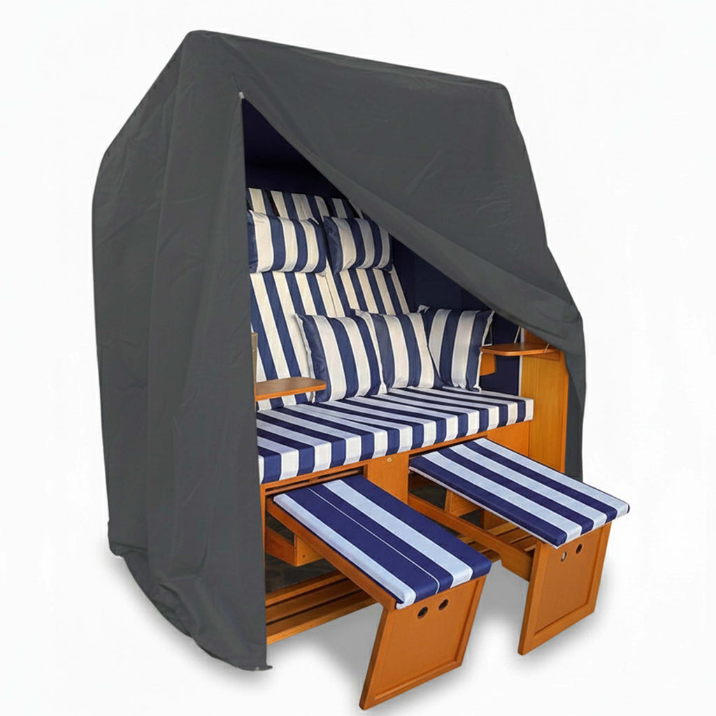 Die Strandkorb Schutzhülle Borkum ist ideal für große und XXL-Strandkörbe. Hergestellt aus Oxford 420D Polyester schützt diese extra große Strandkorb Abdeckung Ihren Korb zuverlässig – das ganze Jahr über. Ob als Strandkorbhülle winterfest oder als leichte Abdeckung im Sommer – Modell Borkum ist die robuste Lösung.