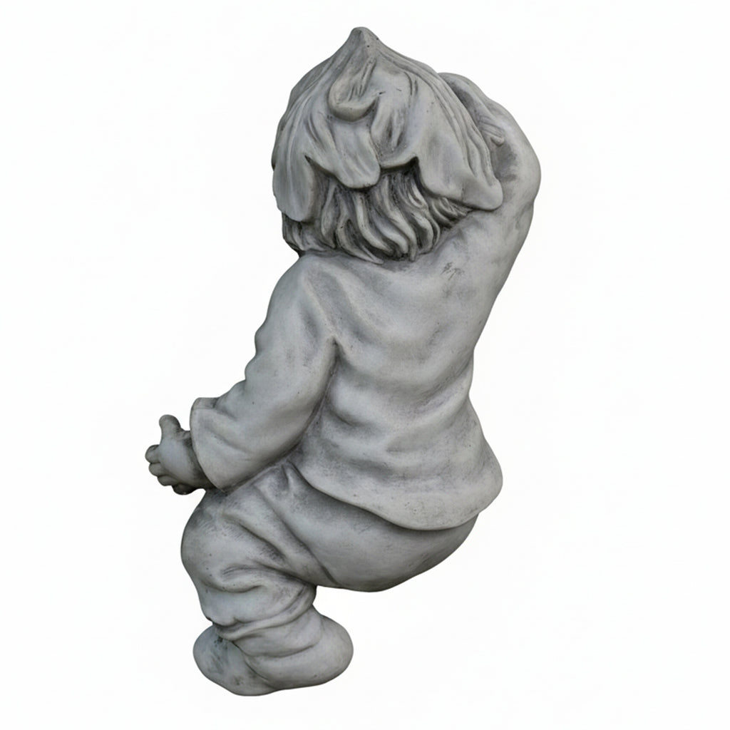 Um die Langlebigkeit der Wichtelfigur zu gewährleisten, empfehlen wir, sie bei extremen Witterungsbedingungen, wie starkem Regen oder Frost, vor den Elementen zu schützen oder im Winter in einem trockenen Bereich aufzubewahren.
